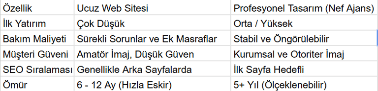 Düşük maliyetli bir site, kısa vadede tasarruf gibi görünse de uzun vadede "müşteri kaybı" nedeniyle size çok daha pahalıya mal olur.